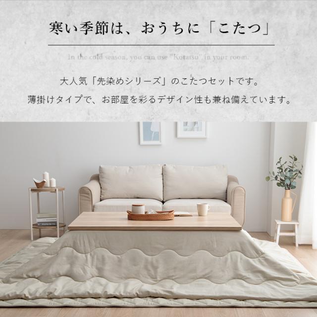 こたつ布団 セット 長方形 大判 2点 コタツ リバーシブル 掛敷セット デニム 西海岸 綿 100% 「 先染めこたつ掛敷布団2点セット 」 205×245cm 洗える 薄掛け こたつ おしゃれ 北欧 コタツ 省エネ 節電対策