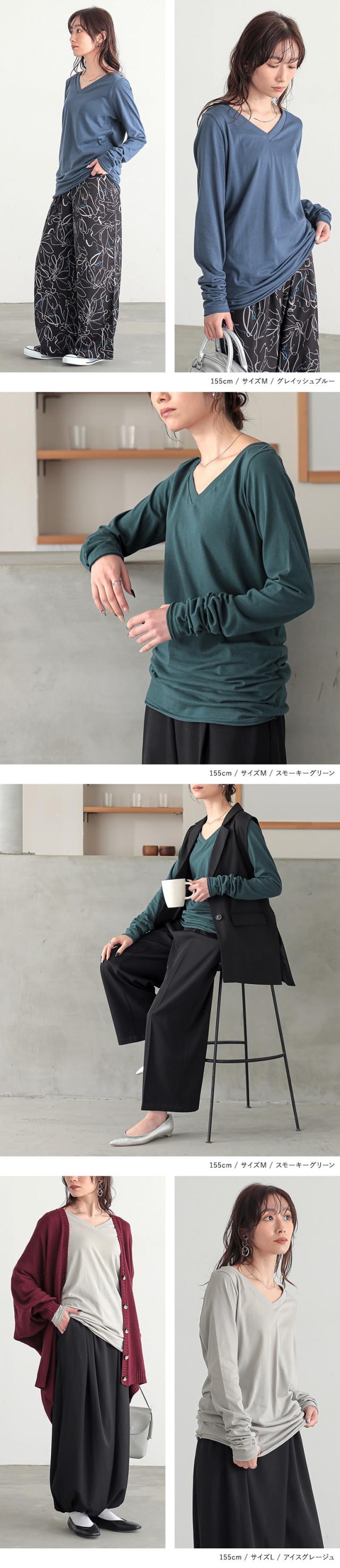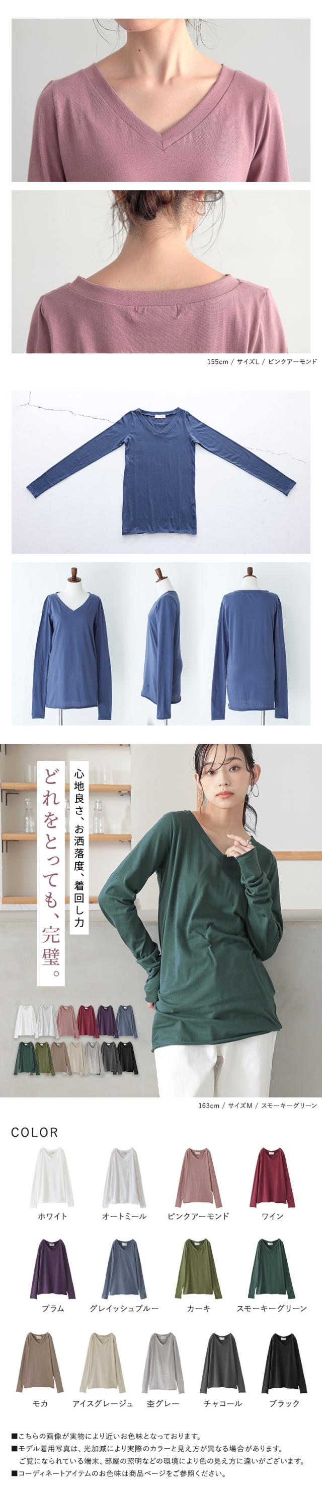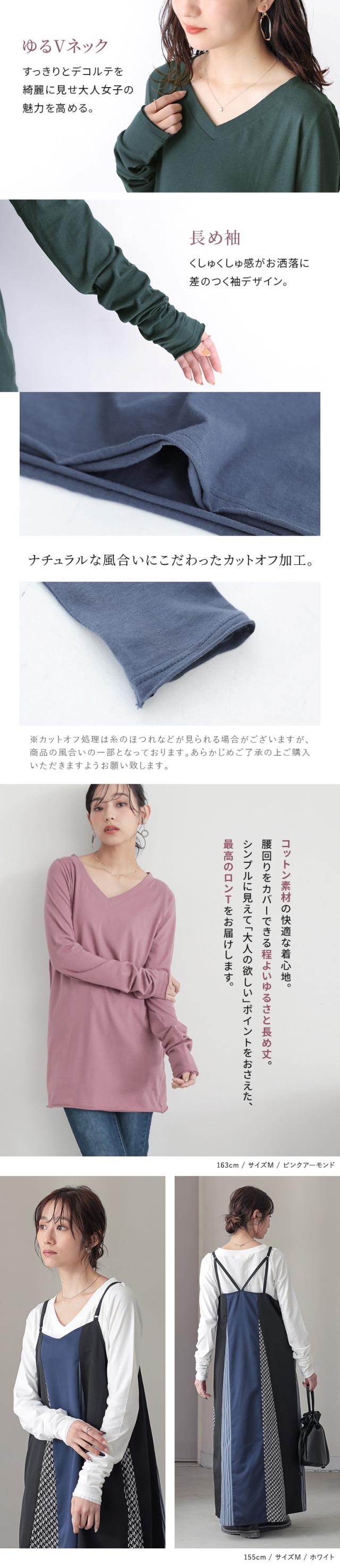 『シンプルVネックゆるっとロンT』 ※メール便可※【5】[ロンT Tシャツ カットソー レディース トップス 長袖 Vネック 綿100% 秋 冬 春 ロングシーズン インナー レイヤード 重ね着 ゆったり 体型カバー 日本製 tal1158]