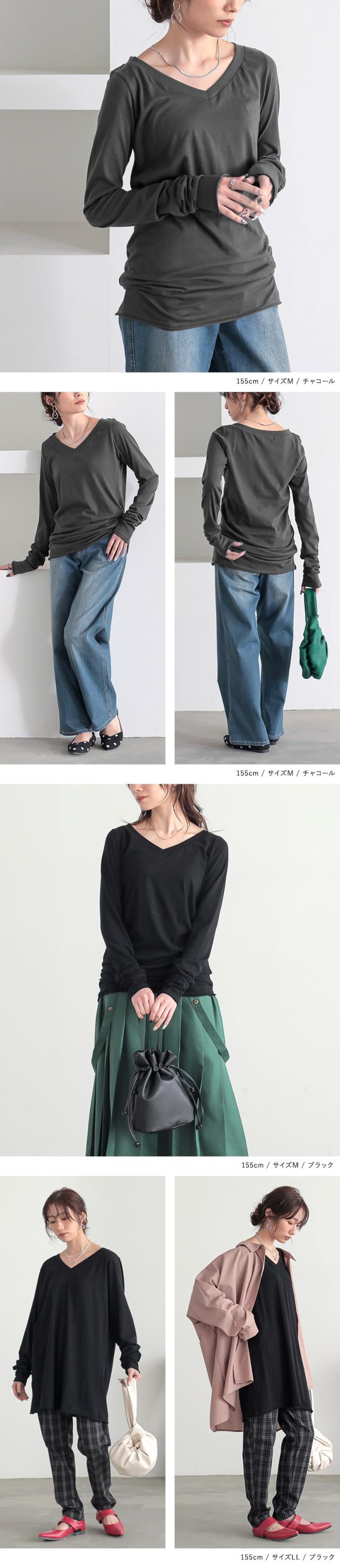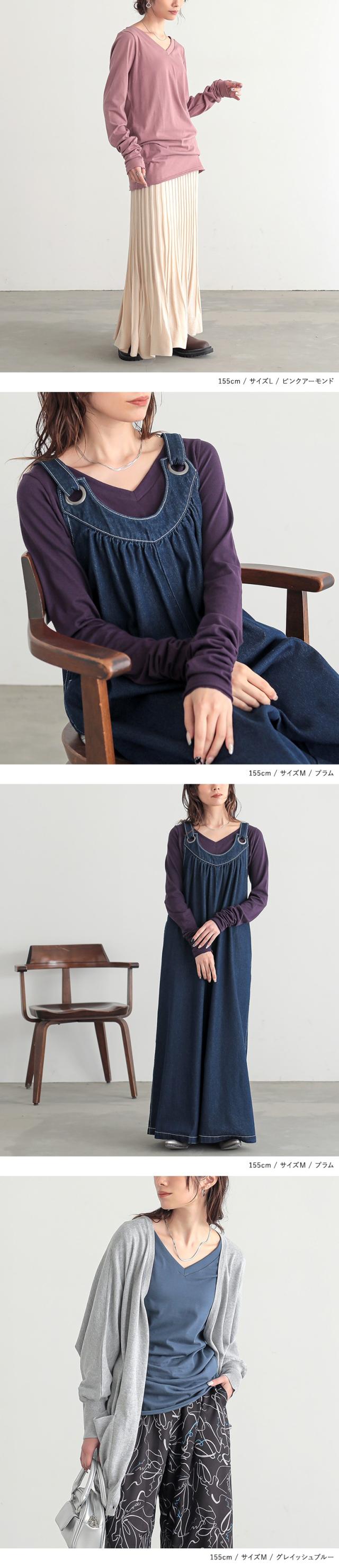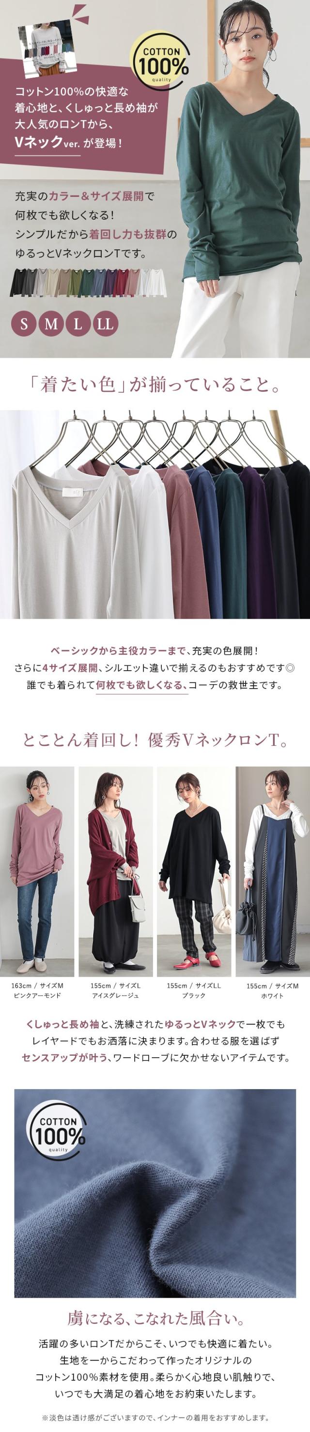 『シンプルVネックゆるっとロンT』 ※メール便可※【5】[ロンT Tシャツ カットソー レディース トップス 長袖 Vネック 綿100% 秋 冬 春 ロングシーズン インナー レイヤード 重ね着 ゆったり 体型カバー 日本製 tal1158]