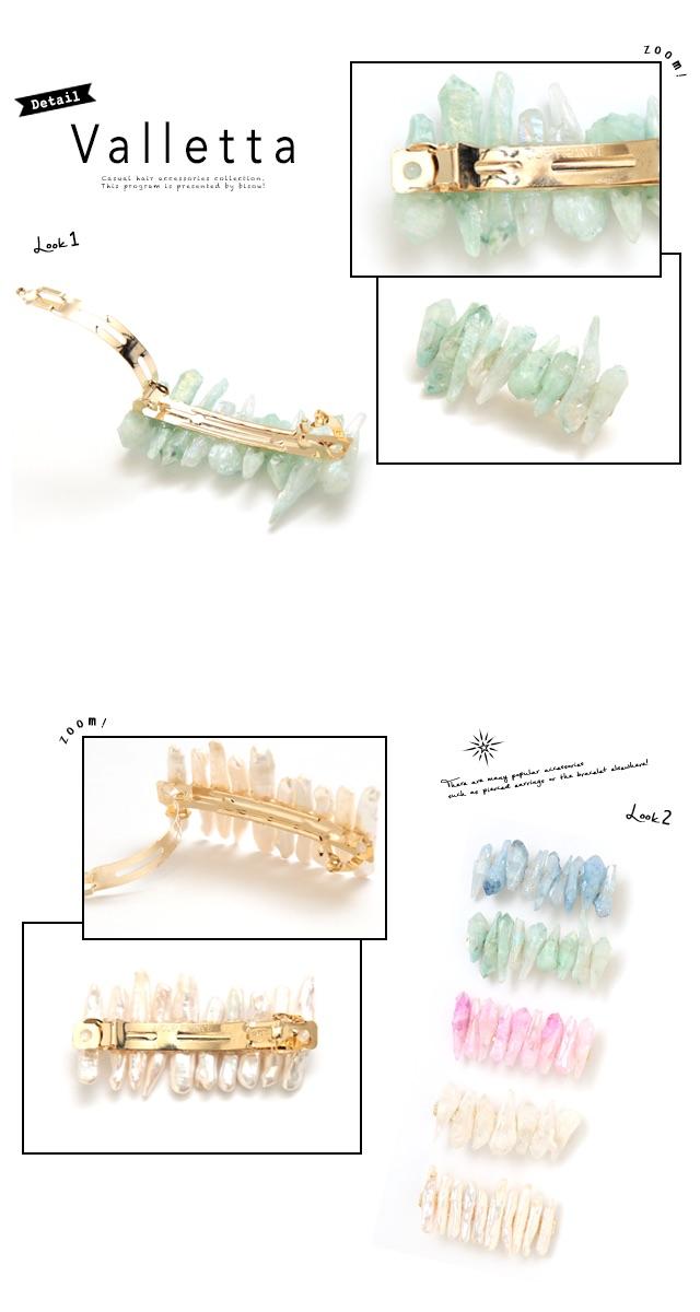 【天然石のシンプルなバレッタ】ストーン/パール調/パステルカラー/夏/サマー/ヘアアレンジ/髪留め/髪飾り/ヘアアクセサリー
