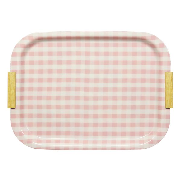 NSトレー 取手付 L ミルキーチェック ピンク (滑り止め トレイ お盆)【送料無料】