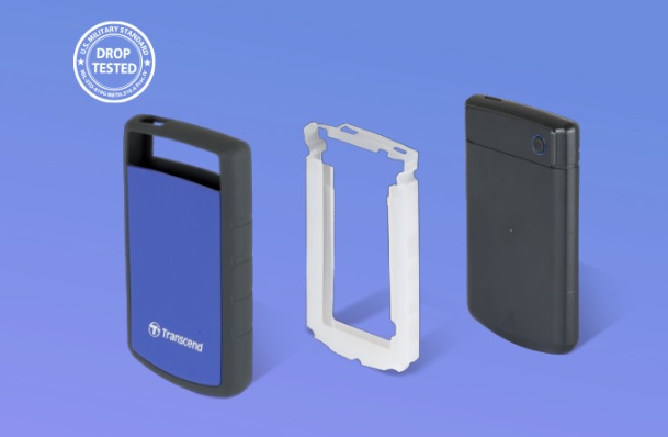 StoreJet 25H3は米軍の落下試験相当のテストで耐衝撃性を確認しています。シリコンカバー、衝撃吸収サスペンションダンパー、強化ケースの三層構造でデータを保護します。
