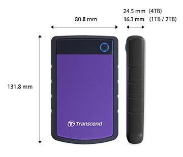 耐衝撃 ポータブルHDD 4TB USB3.1 Gen1 外付けハードディスク Transcend StoreJet 25H3P パープル [TS4TSJ25H3P]