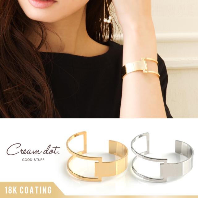センターより片方だけが2ラインになっているメタルデザインバングル。
