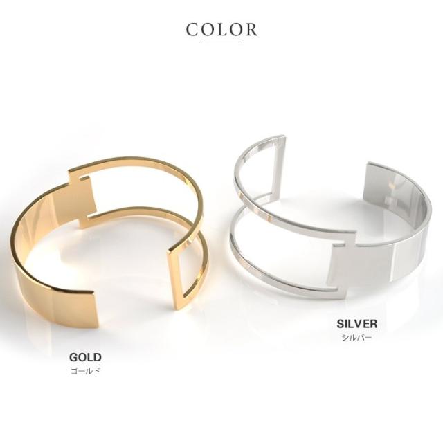 【ゆうパケット送料無料】バングル ワイドバングル メタル アシンメトリー 2ライン ゴールド シルバー レディース シンプル トレンド