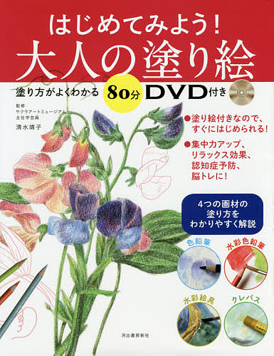 DVD付きだからすぐはじめられる! 色鉛筆、水彩色鉛筆、水彩絵具、クレパスの4画材での塗り方をわかりやすく解説。切り取ってそのまま使える塗り絵と美しい印刷の原画手本付き。