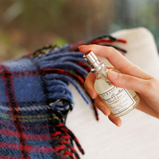 シーツなどのリネンまわりにシュッとひと吹き。 デュランスのピローミストは、リネン廻りにスプレーしてお使いください。