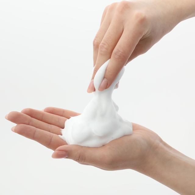 適量(1〜2cm程度)を手のひらに取り、よく泡立ててから使います。泡立てネットを使うと、さらにたっぷりと濃密な泡立ちになります。すすぎは十分に行なってください。 | オススメスキンケアシリーズ