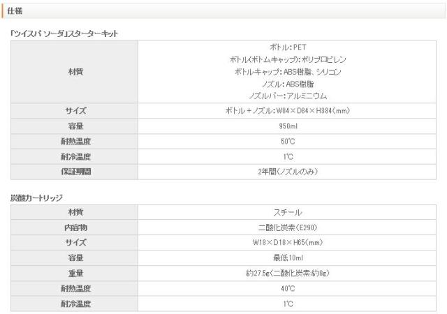 付属品ノズル1個、ボトル1個、ボトルキャップ1個、炭酸カートリッジ6個、取扱説明書 / 2年間保証書(ノズルのみ)1冊、レシピブック1冊 ※海外配送について |