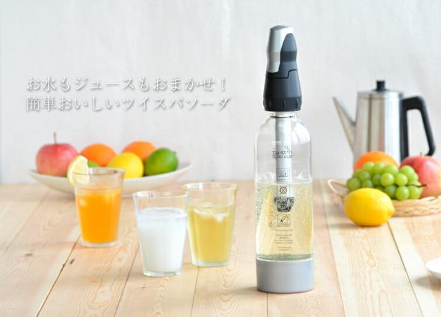 | 「ツイスパ ソーダ」は、セッティング約15秒で普通の水を炭酸水に変身させるヨーロッパ(オーストリア)生まれの炭酸水製造マシンです。 ご家庭で水やジュース、アルコール飲料などを簡単に炭酸飲料にすることができます。 フレッシュジュースやオーガニックのシロップを使って、自分だけのソーダを作ったり、 フルーツジュースを水やストレート・アイスティーで薄めて、炭酸を入れれば、低糖分・低カロリーの健康ジュースが作れます。 またアウトドアやパーティーでいろいろな種類のお酒やジュースでオリジナルのアルコールを作ったりと、幅広くご利用いただけます。 |