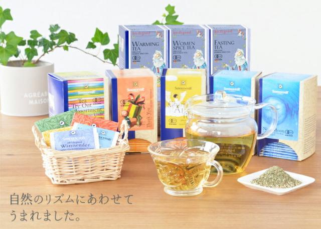 | ハーブティーは、古くからヨーロッパやアジアに伝わるさまざまな生活の場面で楽しまれてきました。 ゾネントア社は伝統的な知恵と現代の感覚を融合させた、オーガニックなハーブティーを追及し続けています。 地球や身体へのやさしさを考えたゾネントアのハーブティーをお召し上がりください。 | ||||||||||||||||||||||||||