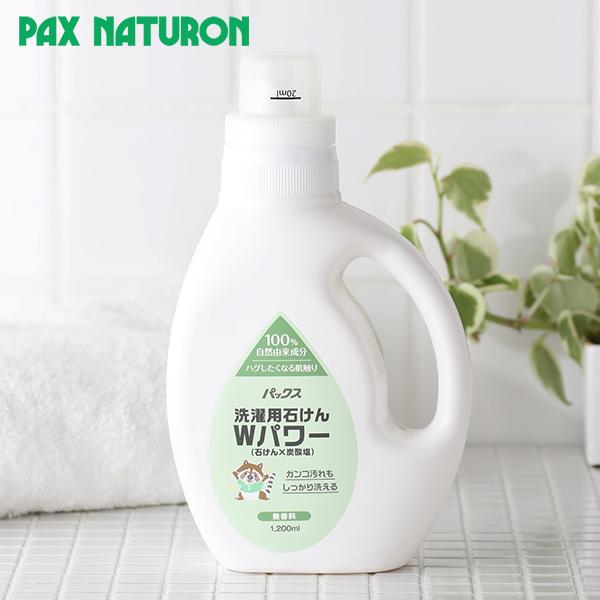 パックスナチュロン 洗濯用石けん Wパワー 本体 1,200ml | 太陽油脂 洗濯洗剤 洗濯 純石けん 炭酸塩 汚れ 黒ずみ 無香料 ボトル やさしい 黄ばみ ニオイ 雑菌 天然成分 衣類用洗剤 無添加 無着色 PAX NATURON ts1031