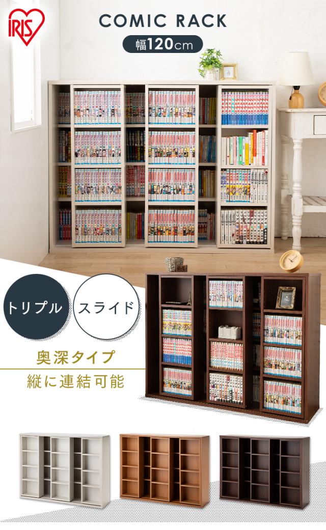本棚 スライド 大容量 コミックラック 幅120 本 収納 本棚 オシャレ アイリスオーヤマ 本棚 スライドコミックラック 本 収納ケース 本棚スライド 本棚 コミック マンガ本棚 文庫本 dvd 文庫本ラック 白 CST-1200 送料無料 【int】