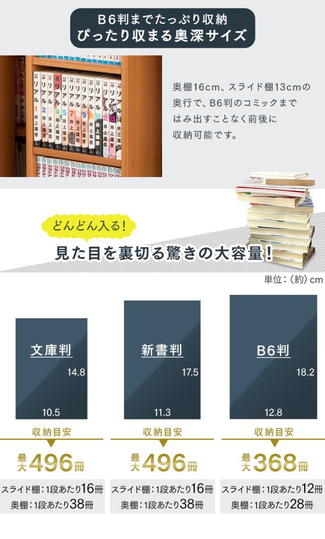 たっぷり収納&奥の本も出し入れしやすいコミックラックです。