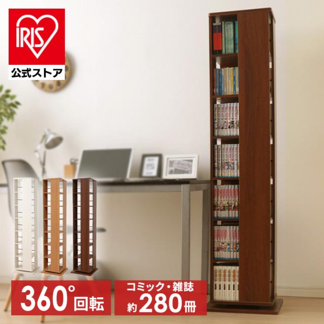 本棚 コミック ラック 回転コミックラック 回転式 コミック ラック 書棚 ブックラック 本収納 整理棚 ウッドラック 収納 文庫 マガジンラック 省スペース スリム 回転 収納 アイリスオーヤマ CR-1500 送料無料 【int】