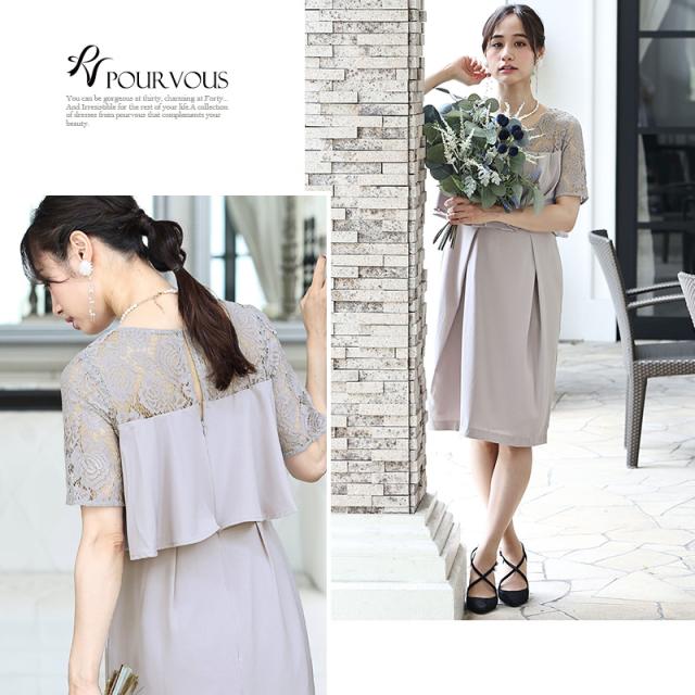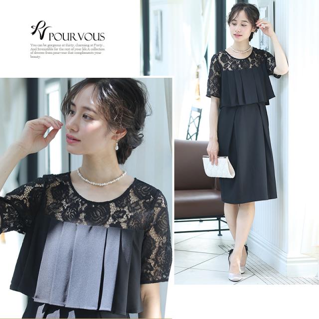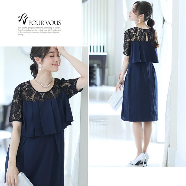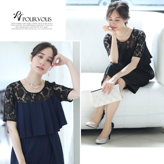 2130 ドレス 結婚式 ワンピース 二次会 フォーマル 膝丈 パーティードレス レース 花柄 可愛い 半袖 袖あり 袖付き プリーツ 食事 お呼ばれ 大人 フォーマルドレス レディース ファッション 20代30代40代50代 ミセス 服 服装 大きいサイズ