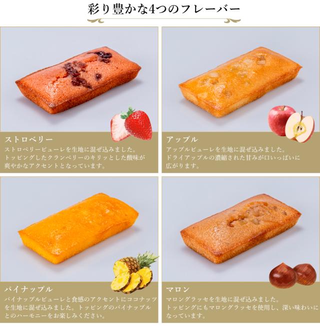 バターとアーモンドプードルで焼き上げた、しっとりとしたフルーツフィナンシェです。生地にはフルーツのピューレを混ぜ込み、表面には果肉をトッピング。香り高い味わいです。