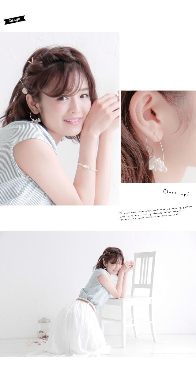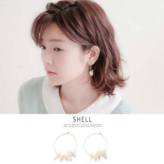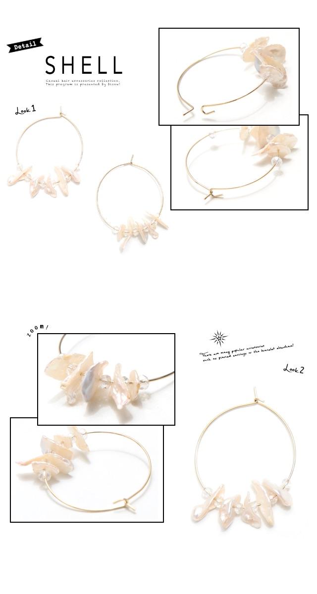 【シェルが連なったシンプルなフープピアス】フープピアス/シェル/ゴールド/シンプル/夏/サマー/耳飾り/アクセサリー