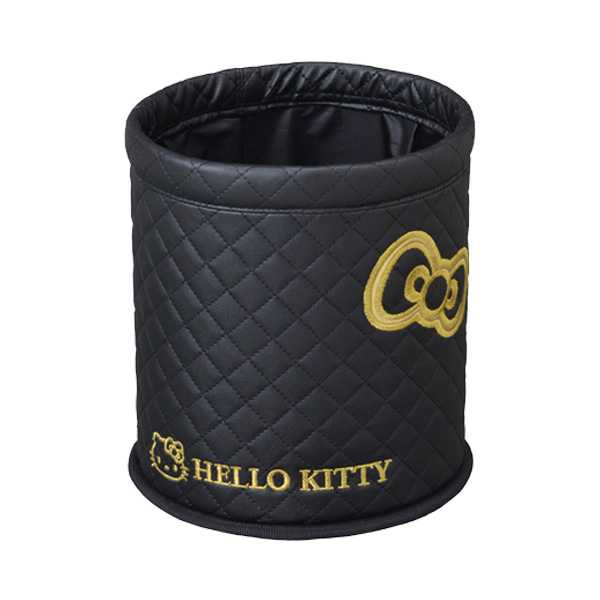 セイワ:ハローキティ サンリオ ダストボックス ゴミ箱 ブラック キルティング 小物入れ 収納 車用/KT491