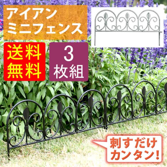 花壇フェンス アイアンフェンス ミニ 小型 おしゃれ 仕切りフェンス リーフ 3枚組 幅47cm 高さ25.5cm