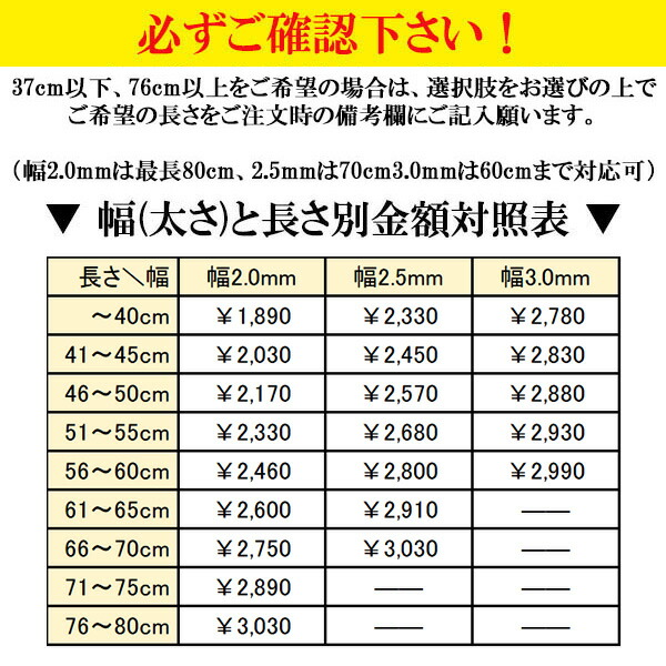 ※オーダー内容(色・幅・長さ)は同時に1つまでしかお受けできません。複数のオーダーを同時にされる場合は、お手数ですが1つのオーダー毎に、お買い物カゴに商品を入れていただくか、オーダーの内訳をご注文時の備考欄にご記入いただきますよう、お願い致します。