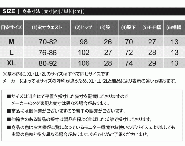 メーカーによってはサイズの呼称が違うため、XL・LL・2Lと商品により表示の違いがあります。