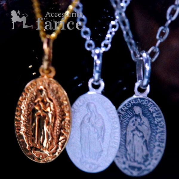ミニサイズ 楕円 メダイ マリア様 ペンダント グアダルーペの聖母 マリア 天使の祝福 シルバー925 レディース シルバーアクセサリー 【ゴールド or ホワイト or ブラックグレー】