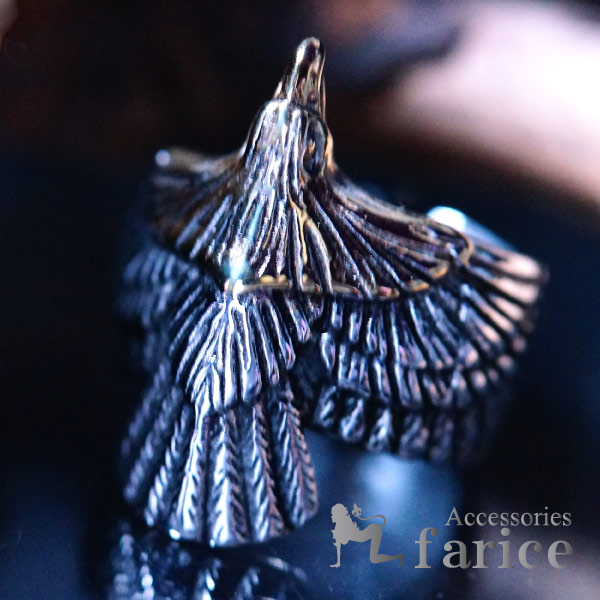 ★ネイティブアメリカンの王道!【鳥類の王者/イーグル】の全身を使ったインディアンジュエリー風メンズリング!!