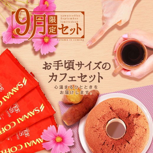 【澤井珈琲】送料無料 9月限定!オータムスタイルのコーヒーと焼き芋スイーツ福袋(珈琲豆/シフォンケーキ/秋)