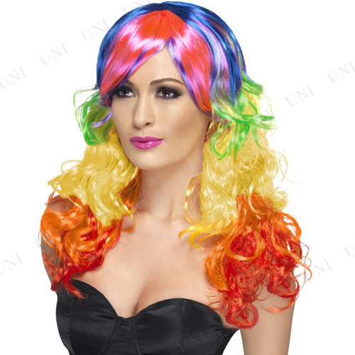 #17hwメイク,ハロウィン 衣装,プチ仮装,変装グッズ,パーティーグッズ,かつら,カツラ,髪の毛,かぶりもの,巻き毛,カーリーヘアー,パーマ,仮装グッズ,小物,小道具,パーティグッズ,なりきり,変身,イベント,宴会,余興,出し物,文化祭,学園祭,飲み会,忘年会,新年会,歓迎会,歓送迎会,結婚式,運動会,体育祭,仮装マラソン,演劇,おもしろ雑貨,おもしろグッズ,仮装用品,仮装雑貨,お手軽,簡単,気軽,楽しい,ハロウィーン,halloween,ロングヘアー,Rainbow Curl Wig Multi-Coloured Long with Fringe,22703skey 5020570420829