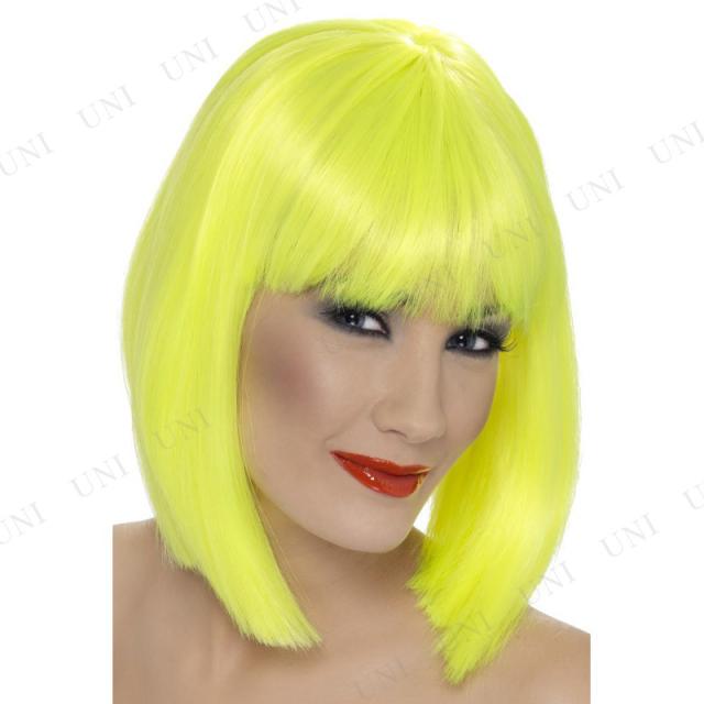 コスプレ 仮装 グラム・ウィッグ ネオンイエロー Smiffys コスプレ小物 フリーサイズ ネオンカラー ボブスタイル