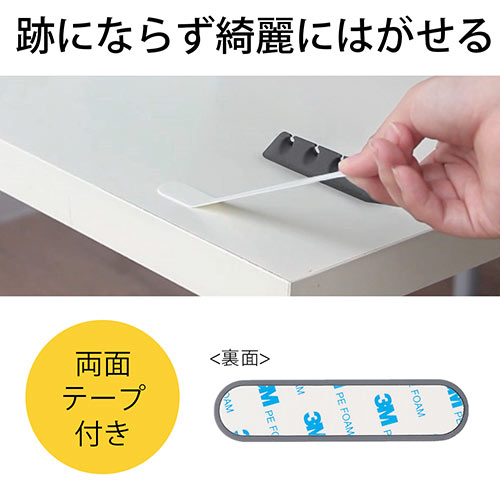 ケーブルホルダー 4本固定 2色セット ケーブルクリップ 両面テープ貼り付け [200-CA026]