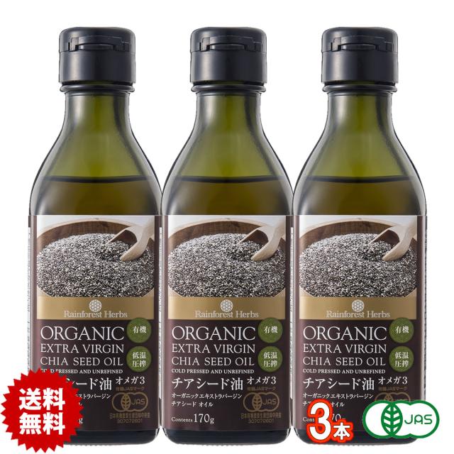 有機JASオーガニック チアシードオイル 170g 3本 ペルー産 チアシード油 低温圧搾一番搾り エキストラバージン