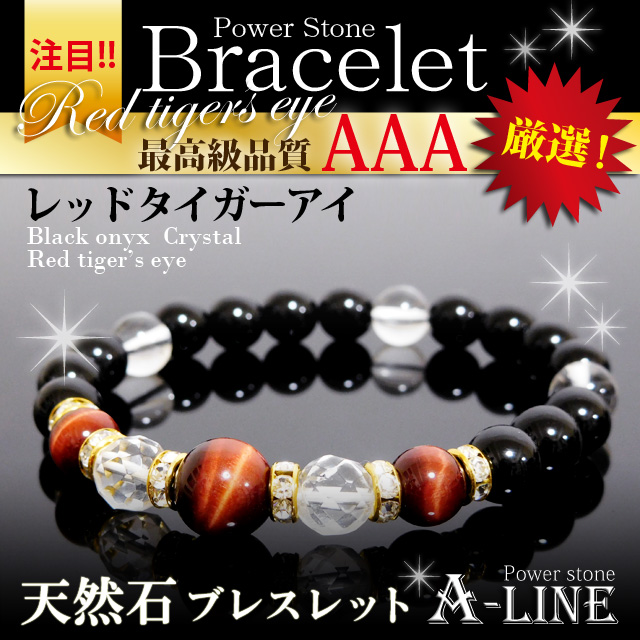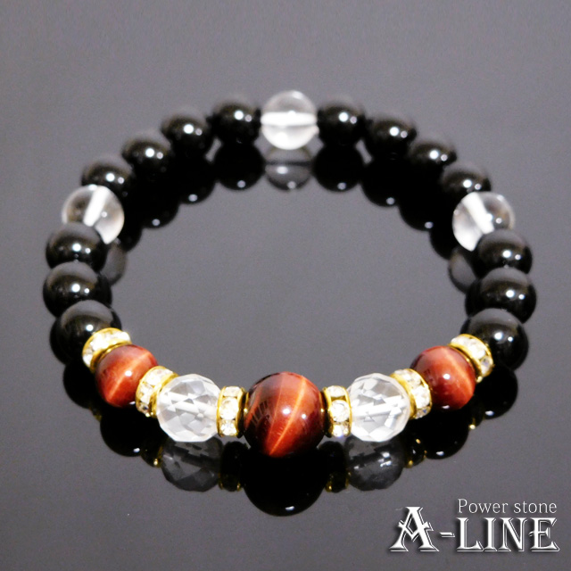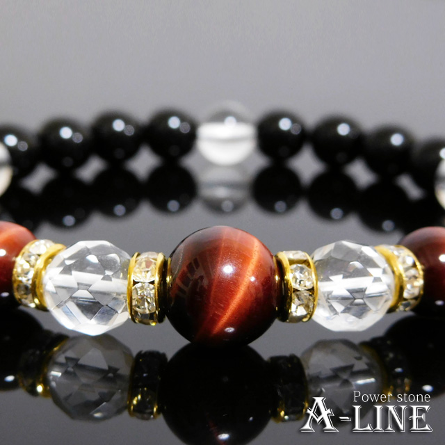 パワーストーン ブレスレット AAAレッドタイガーアイ10mm&8mm・64面カット水晶&オニキス8mm PW-3015