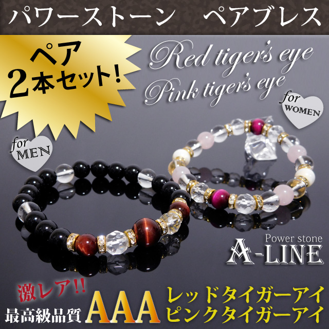 送料無料 パワーストーン ブレスレット 男性用AAAレッドタイガーアイ10mm&女性用ピンクタイガーアイ8m PW-3017