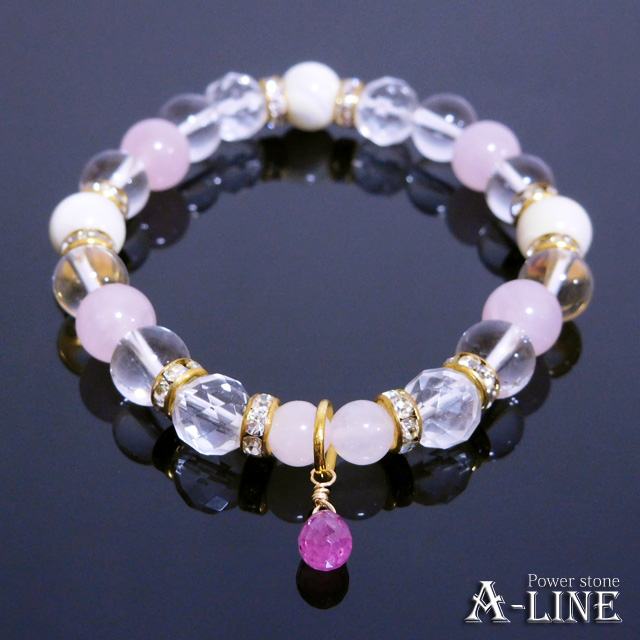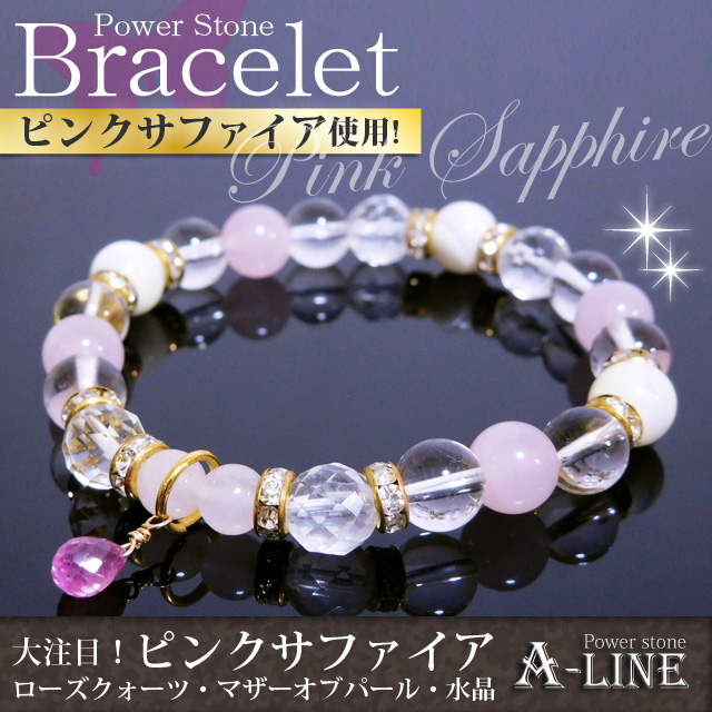パワーストーン ブレスレット 9月の誕生石ブレストップに ピンクサファイア マザーオブパール使用 PW-3019