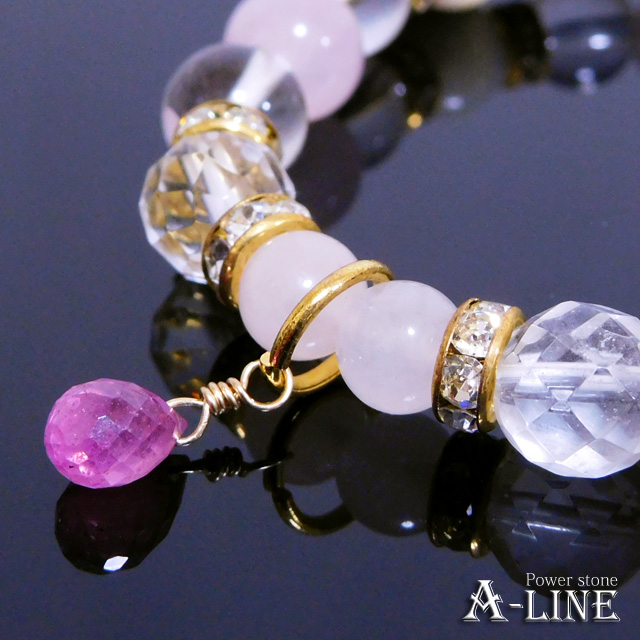 ルビーと同じコランダムグループの石になり、ブルーサファイアは青い物、ピンクサファイアはピンク色の物を指します。ローズクォーツとマザーオブパールを使い更に女性らしさをUPさせる組み合わせ♪