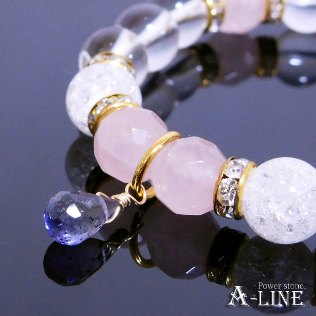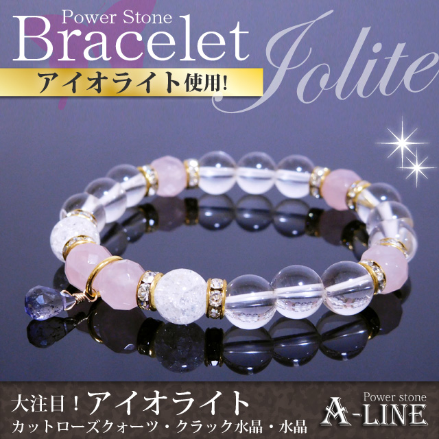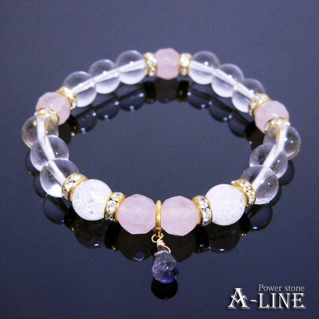 パワーストーン ブレスレット 9月の誕生石ブレストップに アイオライト カットローズクォーツ使用 PW-3024