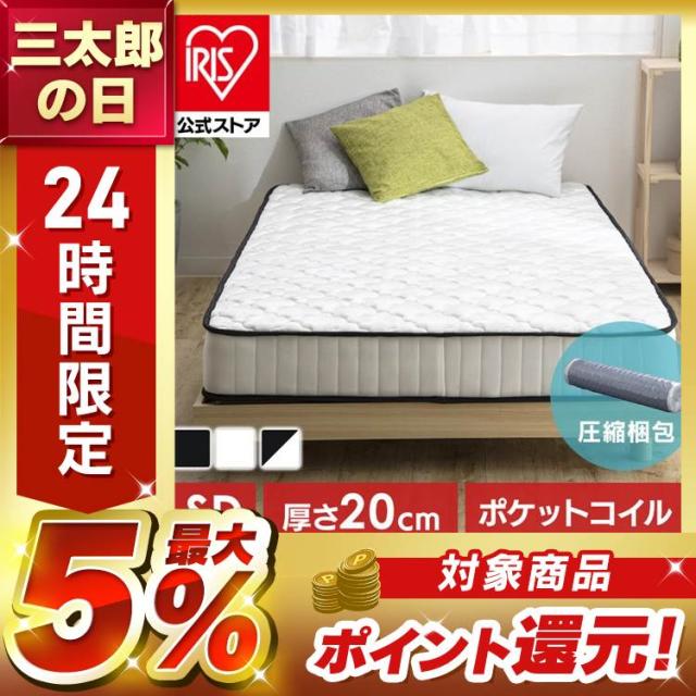 マットレス ポケットコイル セミダブル 厚さ20cm ベッドマットレス 保温性 通気性 体圧分散 クッション性 SD セミダブルサイズ 新生活 一人暮らし ひとり暮らし PKTM-SD プラザセレクト 送料無料 【int】