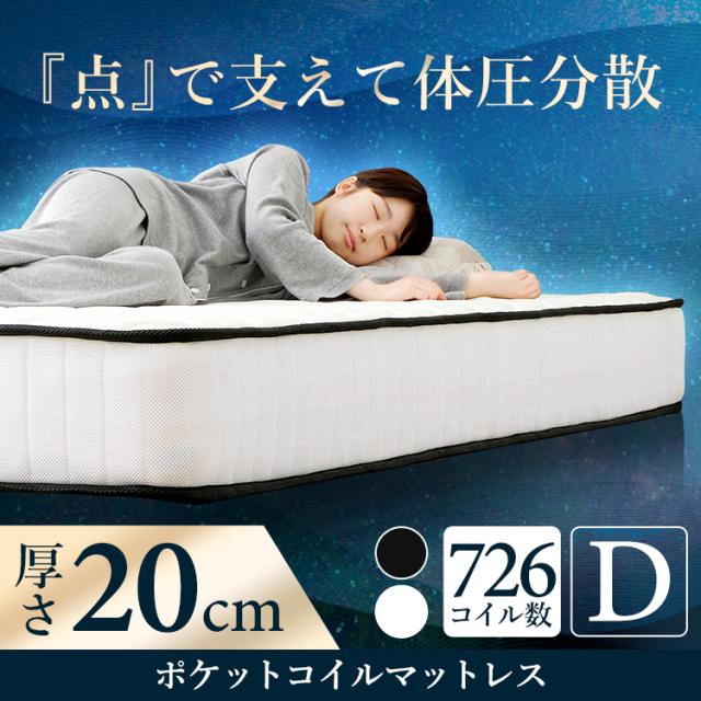 マットレス ポケットコイル ダブル 厚さ20cm ベッドマットレス 保温性 通気性 体圧分散 クッション性 D ダブルサイズ 新生活 一人暮らし ひとり暮らし PKTM-D プラザセレクト 送料無料