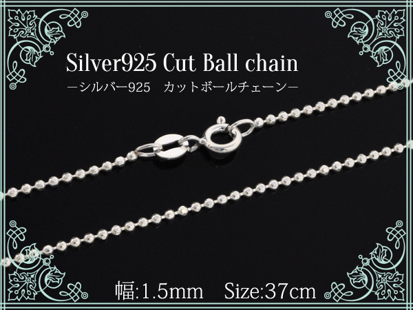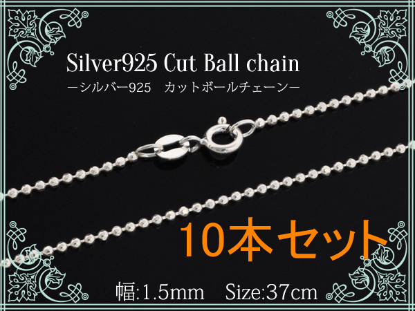 10本セット silver925カットボールチェーン【幅1.5mm 37cm】チェーンのみ シルバー925 定番 チェーン 女性 レディース 引き輪付ネックレスシンプル 送料無料