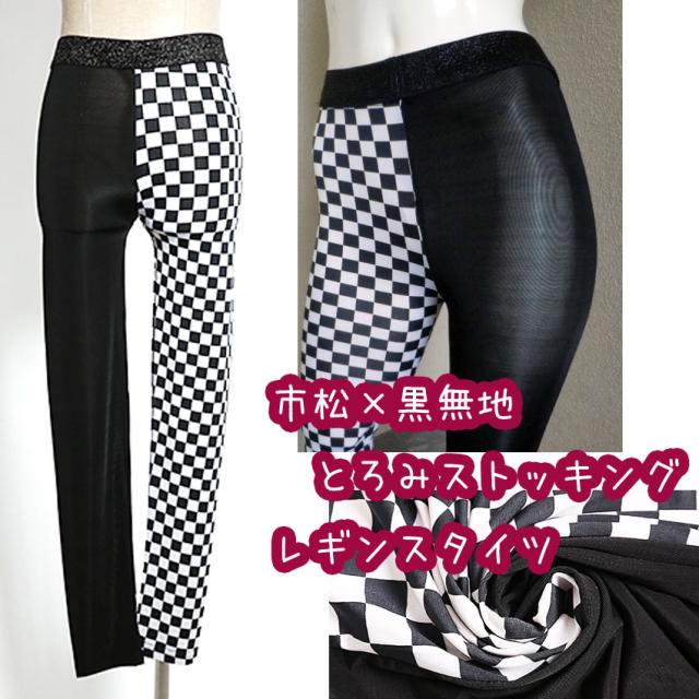 送料無料 黒 無地 市松 イチマツ レギンス タイツ 個性的 10分丈 アシンメトリー ダンス ダンス ゴスロリ衣装 コスプレ 日時指定不可