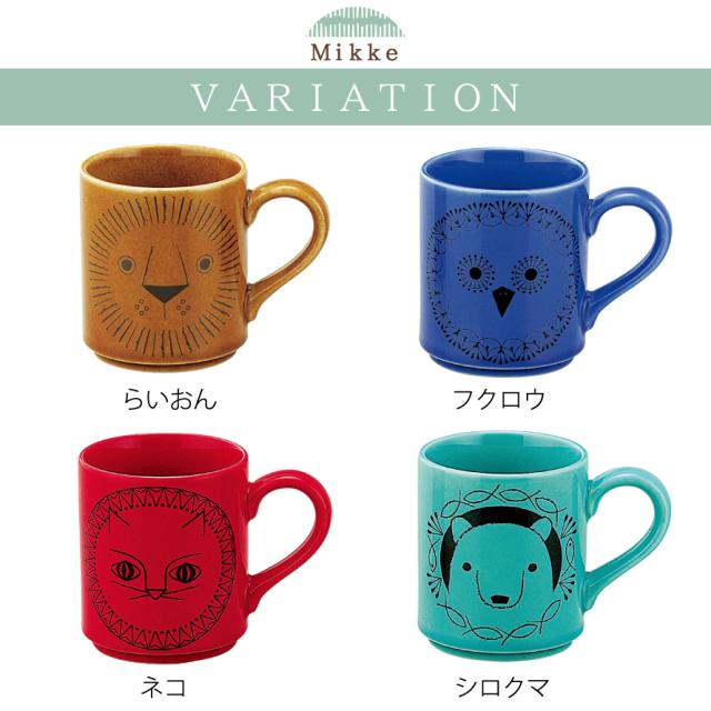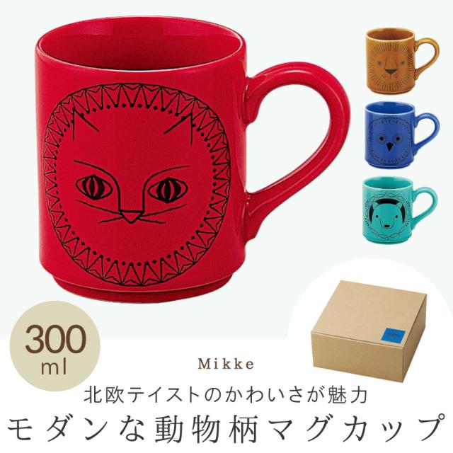 マグカップ コップ 北欧 モダン 日本製 ミッケ Mikke 動物 アニマル おしゃれ かわいい ライオン ふくろう 猫 ねこ ネコ 猫柄 くま クマ ターコイズ ブルー 青 レッド 赤 ブラウン 茶 結婚祝い プレゼント ギフト 6791 Mikke マグカップ