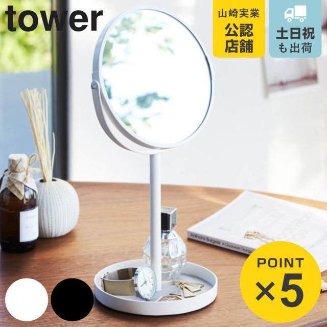 tower スタンドミラー&トレイ タワー tower 山崎実業( 山崎実業 タワーシリーズ アクセサリートレー ミラー付き ミラー 鏡 卓上 メイク鏡 卓上ミラー トレイ トレー アクセサリー 収納 拡大鏡 山崎実業 tower)