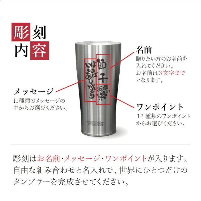 富士の湧水から造る 本格米焼酎 と機能性抜群の サーモスタンブラー を高級桐箱に入れてお届け! 煌びやかな 金箔入り 焼酎を世界に一つだけのオリジナルタンブラーで♪最高の感動と体験を贈る豪華な ギフトセット です。 1. 本格米焼酎 富士のしずく 静岡県富士宮市、富士の麓にある造り酒屋「富士錦酒造」では、創業以来、富士山の柔らかな水を使用した お酒 の醸造に励んできました。 米焼酎 「富士のしずく」は、天然のミネラルを多く含んだ湧水と、豊饒な大地で育てた酒米「山田錦」から造られた逸品です。 焼酎の中には、 金箔 を贅沢に入れました。金は「身を守り、幸運を呼ぶ」と言われ、お守りとして愛されてきた 縁起物 。華やかに舞い踊る 金粉 が、大切な方の長寿と幸せをお祝いします。 2. 安心と信頼のサーモスブランド サーモス ステンレス タンブラー なら間違いなし!当店スタッフも声をそろえて「これを使ったら、今まで使っていた グラス には戻れない!」と言うほど、機能性に優れています。 保冷・保温力に優れているから、飲み頃温度を長時間キープ。ストレートはもちろん、ロックや水割り、お湯割りなどどんな飲み方でも美味しくいただけます。真空断熱 構造で、結露 しにくく、テーブルを濡らすこともありません。熱い飲み物を入れても外側は熱くならないのでとっても快適です。 3. 当店オリジナルデザイン 箱を開けた時、お手紙をもらったような感動。すっきりとしたスタイリッシュなフォルムに味のある手書き文字・イラスト。名入れ×イラスト×メッセージのカスタマイズで 世界に一つだけのデザインを。ぜひ、大切な人にお手紙を書くような気持ちでお選びください。 《 それぞれ選べる メッセージ と ワンポイント 》 [ メッセージ ] 感謝 の気持ちがストレートに伝わります 1. いつもありがとう 身体を思いやる気持ちを込めて… 2. ずっと元気でね 目にするたびに 孫 の顔が浮かぶメッセージ 3. おじいちゃん いつもありがとう 4. おばあちゃん いつもありがとう 5. じいじ いつもありがとう 6. ばあば いつもありがとう 7. 飲み過ぎ注意 8. 健康第一 9. おつかれさま 10. お父さん いつもありがとう 11. お母さん いつもありがとう [ ワンポイント ] 1. おばあちゃん 2. おじいちゃん 3. ばあば 4. じいじ 「 鶴 は千年、亀 は万年 」長寿の象徴 5. つる 6. かめ 縁起物 として名高い 7. たい 崇高優美 誰もが崇める 8. 富士山 女性におすすめ なデザイン 9. さくら これを見て思い出してもらえる 10. 孫より 年に一度、感謝を伝える 11. 敬老の日 「自分だけ」愛着深まる 12. 専用 日々の空間に馴染む落ち着いたデザインが、お家でゆっくりと晩酌を楽しむ時間にぴったりです。 [ 名入れ ] 「 どうして 名前入り が喜ばれるの? 」 自分の名前が入った商品は世界にただ一つだけ。贈った人に大事に使ってほしい、想いが伝わります。さらにお名前彫刻はずっと消えずに残るから、永く愛着を持って使っていただけます。だから、「名入れギフト」は大切な人に感謝の気持ちを伝えるのにぴったりなおくりもの。私たちは、贈られた人も贈った人もみんなが笑顔になれる商品をお届けします。 ≪ 桐箱入り ≫ 焼酎 & タンブラー の セット は当店オリジナルの桐箱に水引をかけてお届けします。 高級感 のある美しい桐箱と魔除けの意味が込められた梅結びの水引は、お祝いのシーンに相応しい贈り物。目上の方への 贈答品 にもピッタリの一品です。 ≪こんなシーンにおすすめ≫ ・ お酒好き な 男性 女性 への 誕生日プレゼント に ・ 母親 おかあさん 義母 への 母の日 ギフト として ・ 父親 おとうさん 義父 への 父の日 ギフト として ・ 祖父 祖母 おじいちゃん おばあちゃん への 敬老の日 ギフト として ・ 還暦 古希 喜寿 傘寿 米寿 卒寿 白寿 百寿 の 長寿祝い に |