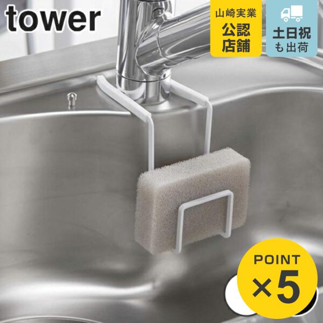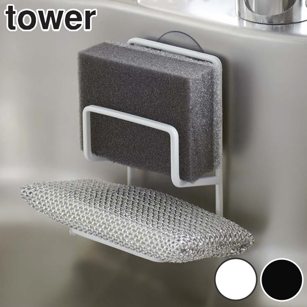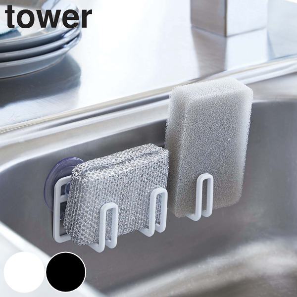 tower 吸盤スポンジホルダー タワー ( 山崎実業 タワーシリーズ スポンジホルダー 吸盤付き スポンジラック スポンジ置き キッチン収納 シンク周り 水周り 掃除道具 キッチン小物 tower 山崎実業 キッチン 山崎実業 tower キッチン)