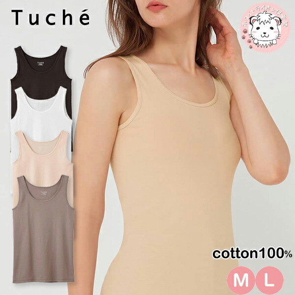 グンゼ トゥシェ タンクトップ 着るコスメ 保湿 綿100% 抗菌 防臭 M/L | 脇縫いなし レディース 綿 下着 肌着 インナー TC4054 GUNZE Tuche