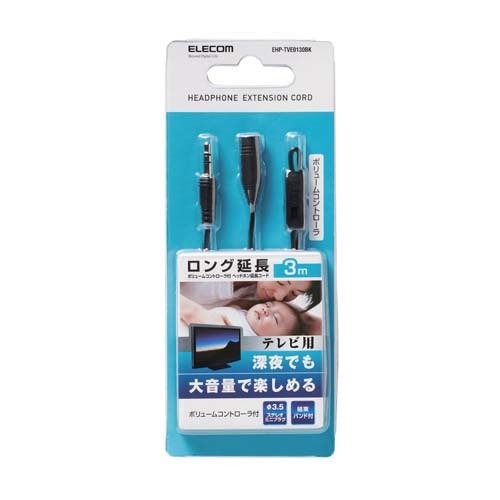 エレコム TV用ボリューム付ヘッドホン延長コード EHP-TVE0130BK(1セット)[ヘッドホン・イヤホン]