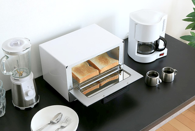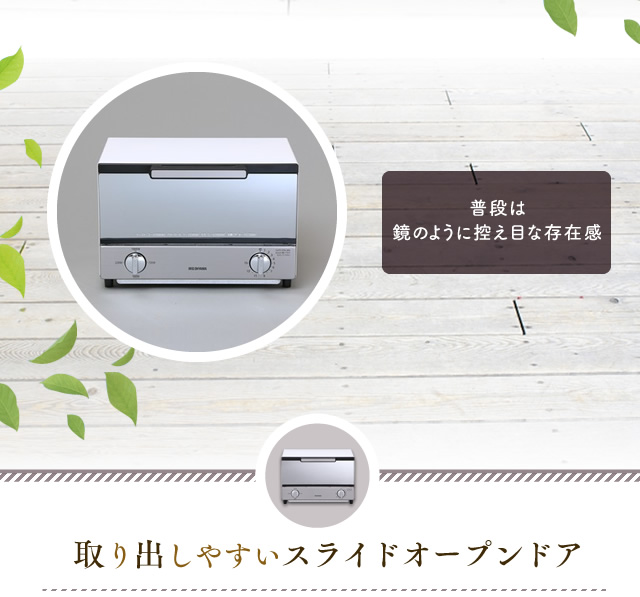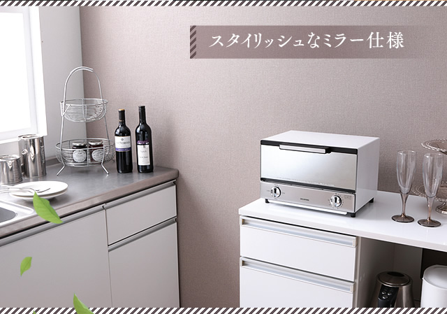 ミラーガラス調でキッチンやお部屋に馴染むインテリア性の高いデザイントースターです。