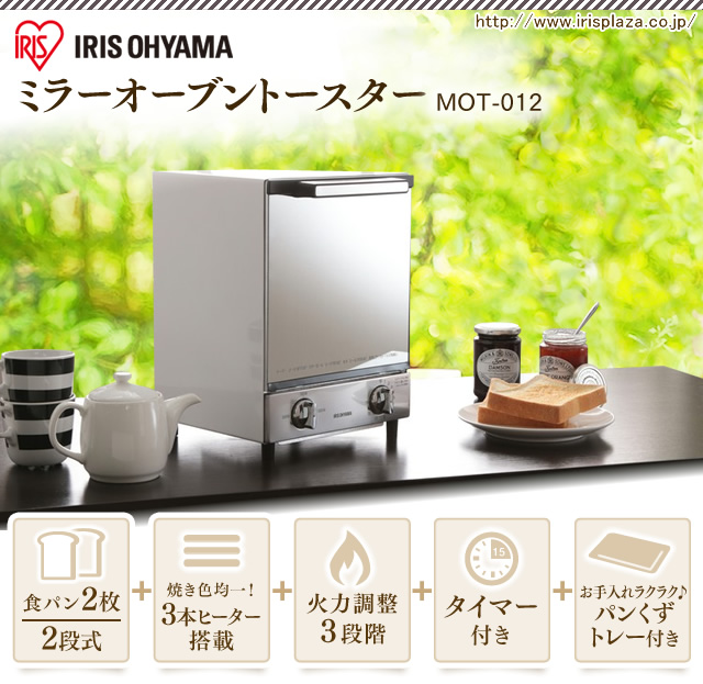 トースター 縦型 2枚 オーブントースター MOT-012 アイリスオーヤマ オーブン ミラー ミラーガラス タイマー 縦 一人暮らし ひとり暮らし トースト 省スペース シック 2段 二段 2枚焼き ホワイト コンパクト 冷凍ピザ ミラー調 送料無料 安心延長保証対象